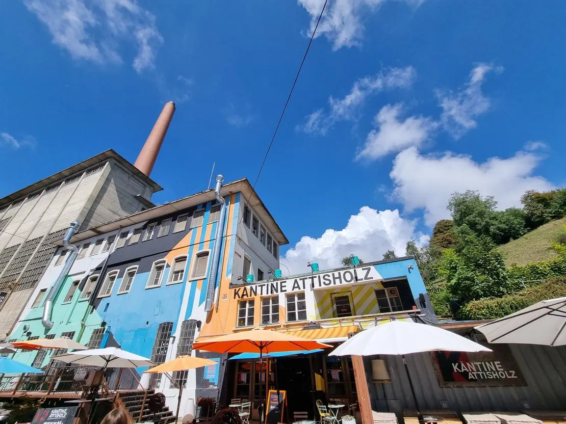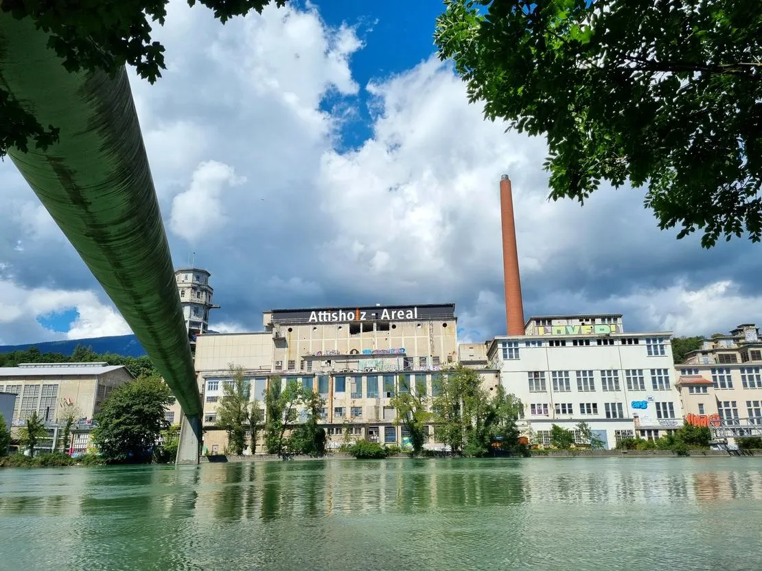 Nach rund einer Stunde erreichen Sie das Attsholz-Areal. Seit der Eröffnung im Jahr 2018 haben sich auf dem Gelände der ehemaligen Cellulosefabrik zahlreiche Angebote etabliert, z.B. Live-Konzerte in der Kiesofenhalle und Attisholz-Arena, Street-Art und Restaurants. Auch eine Führung durchs Areal ist möglich.