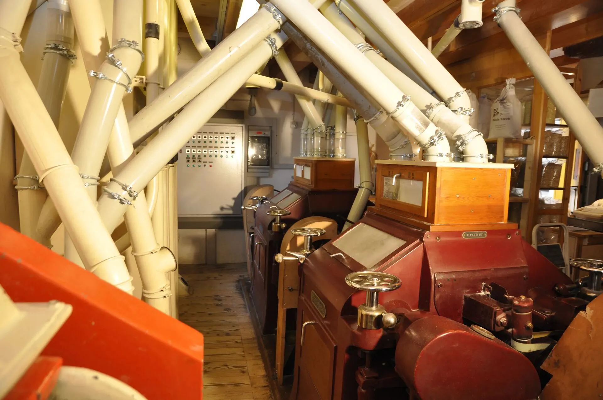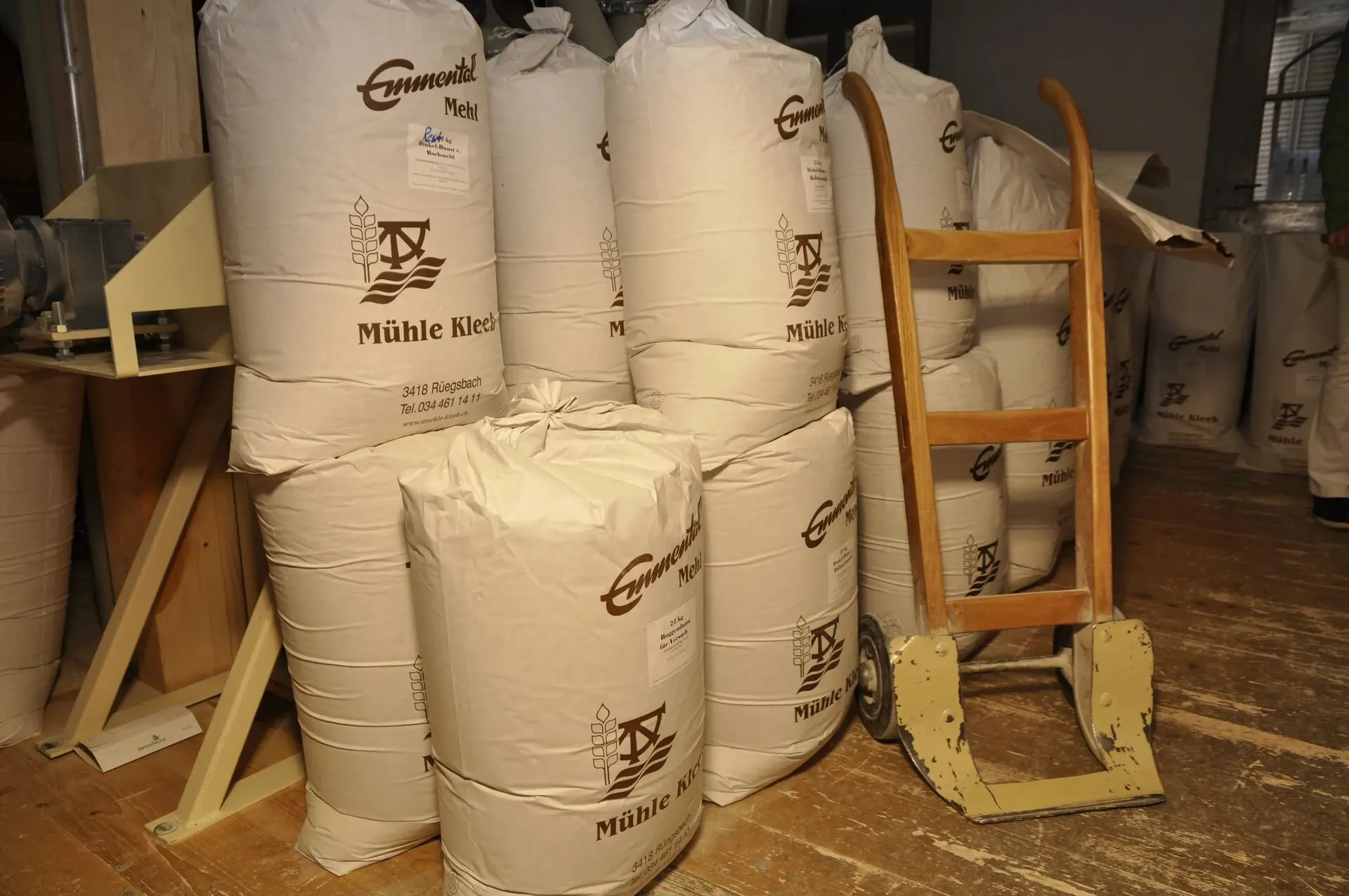 Das Handwerk: Man sieht den Weg vom lokalen Korn zum Mehl. Die Mühle Kleeb produziert verschiedene Mehlsorten ohne künstliche Zusätze.