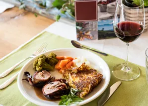 Lassen Sie sich als Vorspeise eine Suppe oder einen Salat servieren und dann mit einem der folgenden Hauptgänge verwöhnen: